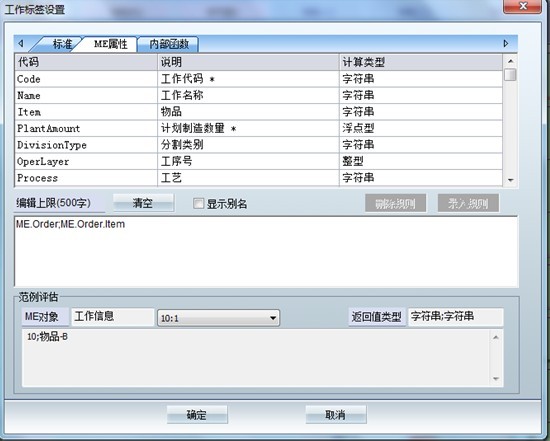 可双击ME属性中的某一行,系统将在对话框中增加对应的表达式,在范例评估中将会有对应的参考值。